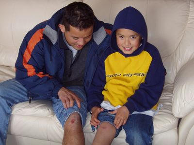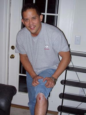 Carl hurt his knee, falling in the parking lot when picking us up from the airport. It was snowy and cold out there, practically a blizzard, and obviously Carl was excited to see us, so he, you know, slipped.